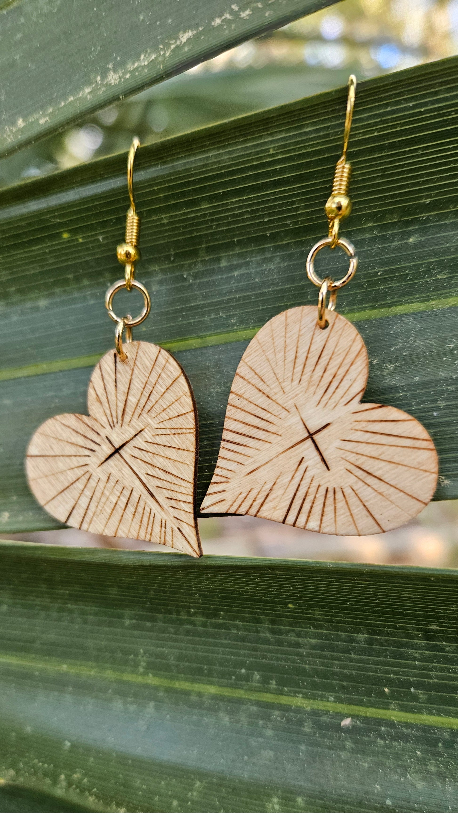 ✧ Each earring is sanded, designed, drawn, burned, stained, and sealed