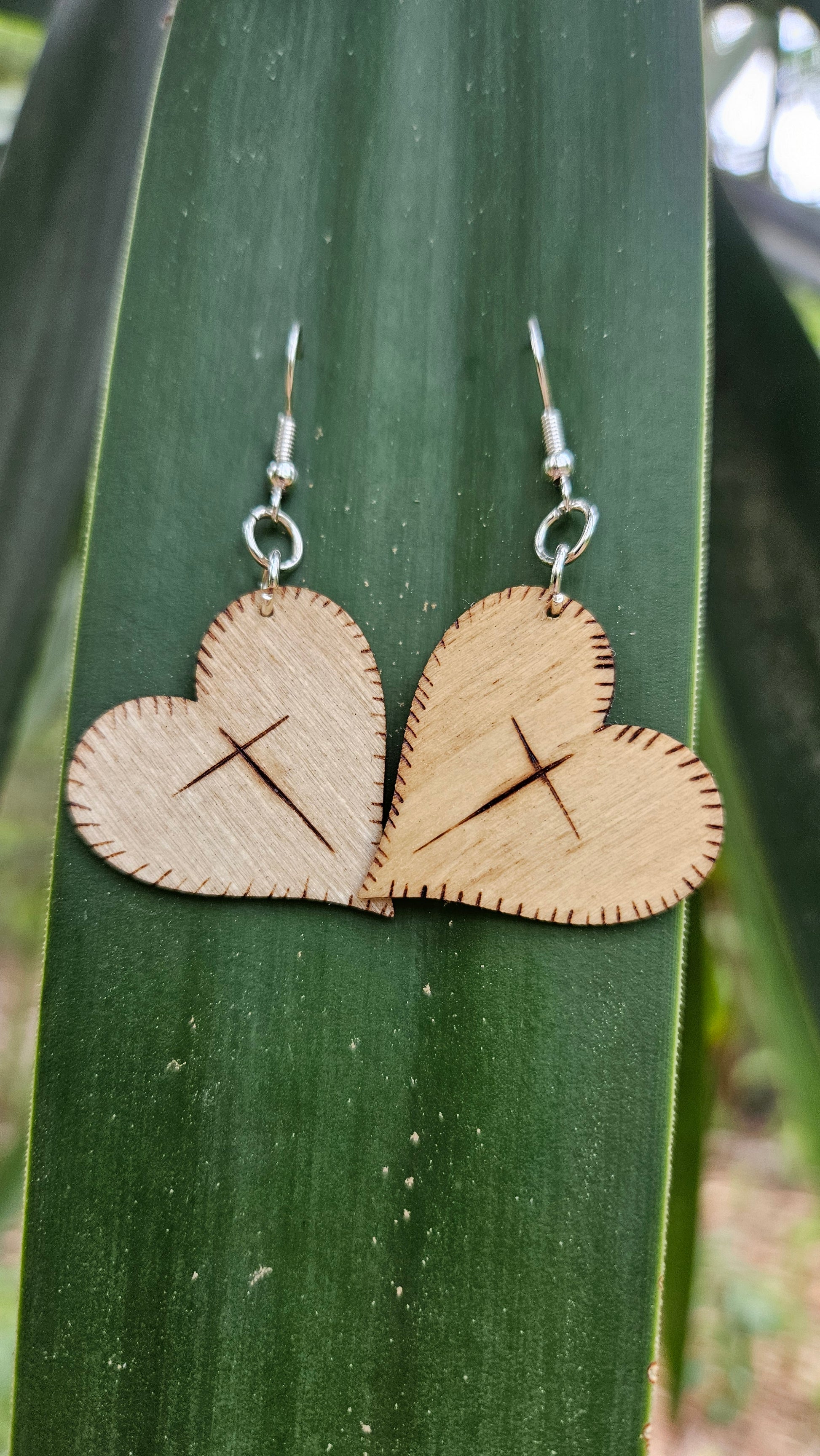 Heart Woodburned Hook Earrings with Crosses